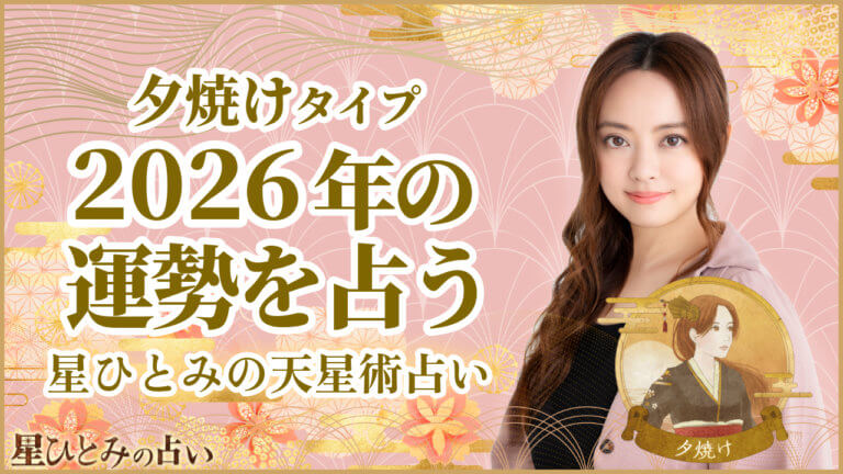 星ひとみが天星術で占う夕焼けタイプの2026年の総合運、恋愛運、結婚運、仕事運、金運、ラッキーカラー、ラッキーストーン、開運行動、相性の良い天星タイプなどを徹底解説します。