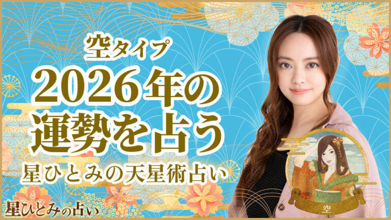 星ひとみが天星術で占う空タイプの2026年の総合運、恋愛運、結婚運、仕事運、金運、ラッキーカラー、ラッキーストーン、開運行動、相性の良い天星タイプなどを徹底解説します。